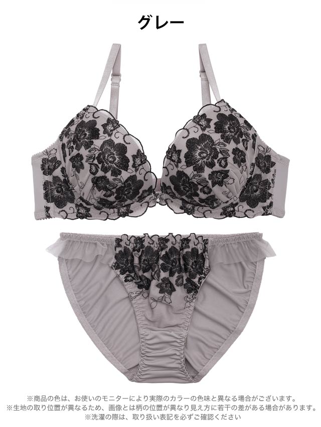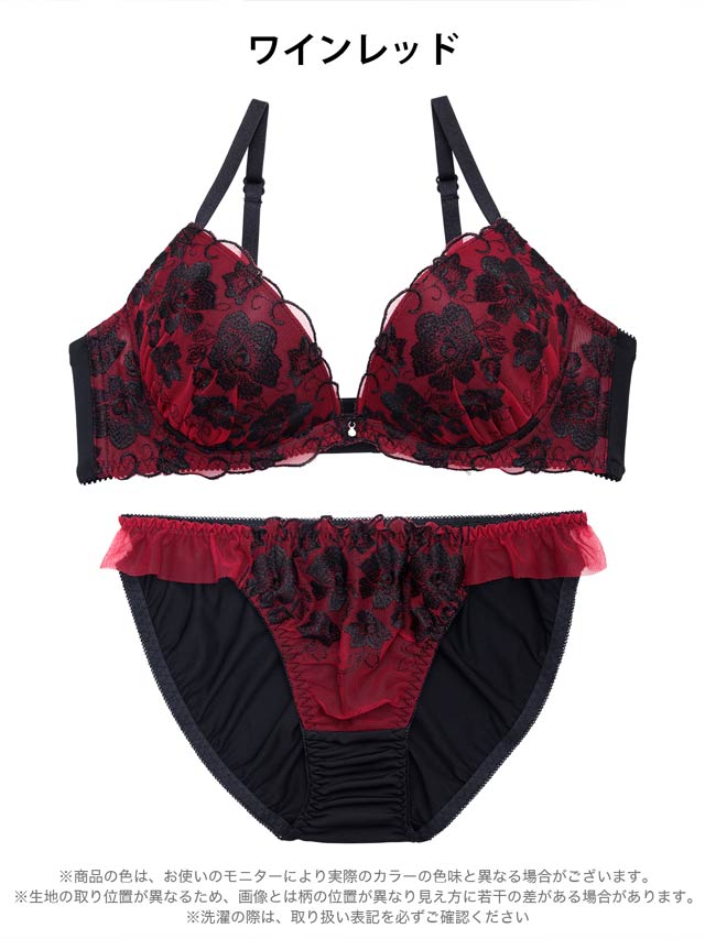 4/8再販!大判フラワー総レース育乳脇高ブラジャー&バック透けフルバックショーツ[激売れ]