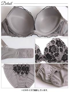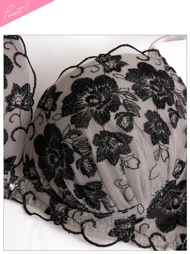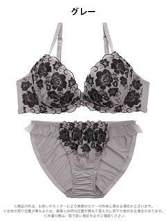 大判フラワー総レース育乳脇高ブラジャー&バック透けフルバックショーツ