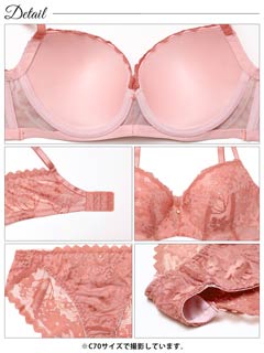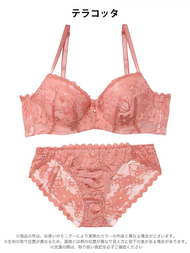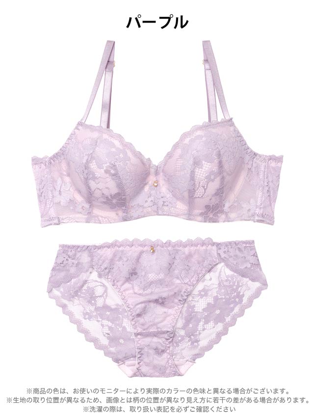 4/15新作!ニュアンスフラワーレース育乳脇高ブラジャー&バック透けフルバックショーツ[激売れ]