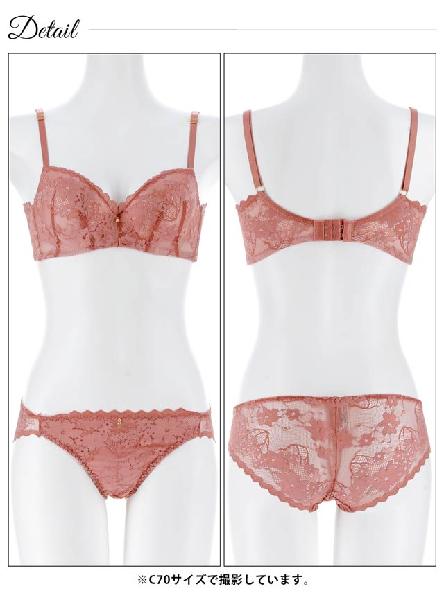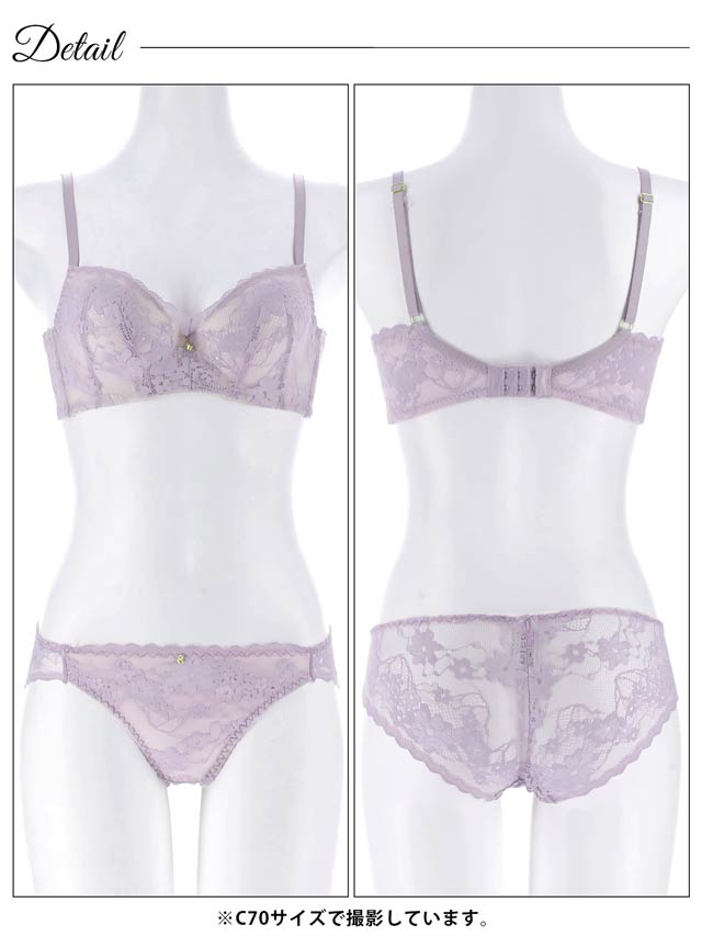大判フラワー総レース育乳脇高ブラジャー&バック透けフルバックショーツ