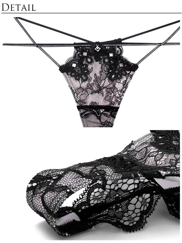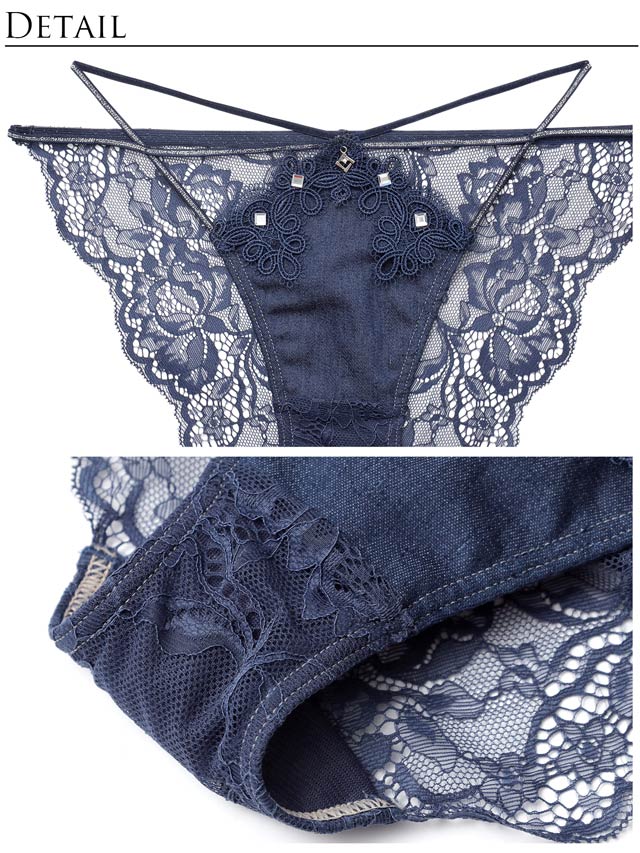 オールレースカットストリング育乳脇高ブラジャー&バック透けフルバックショーツ