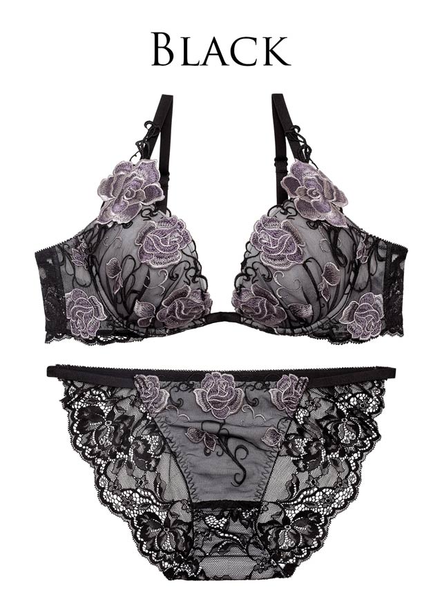 ロマンティックベルローズ育乳脇高ブラジャー&バック透けフルバックショーツ