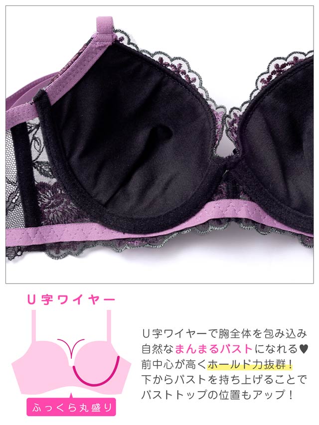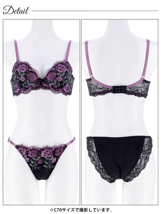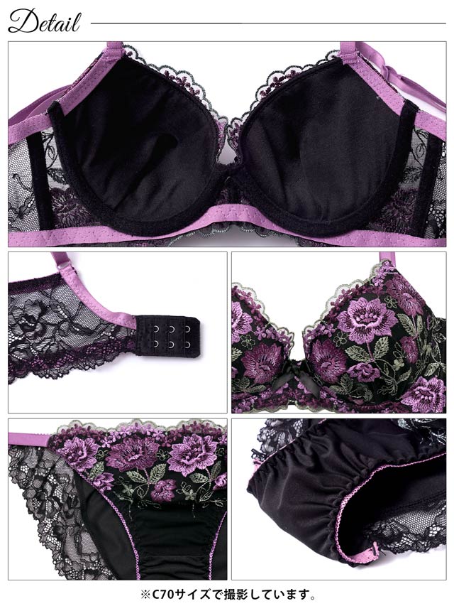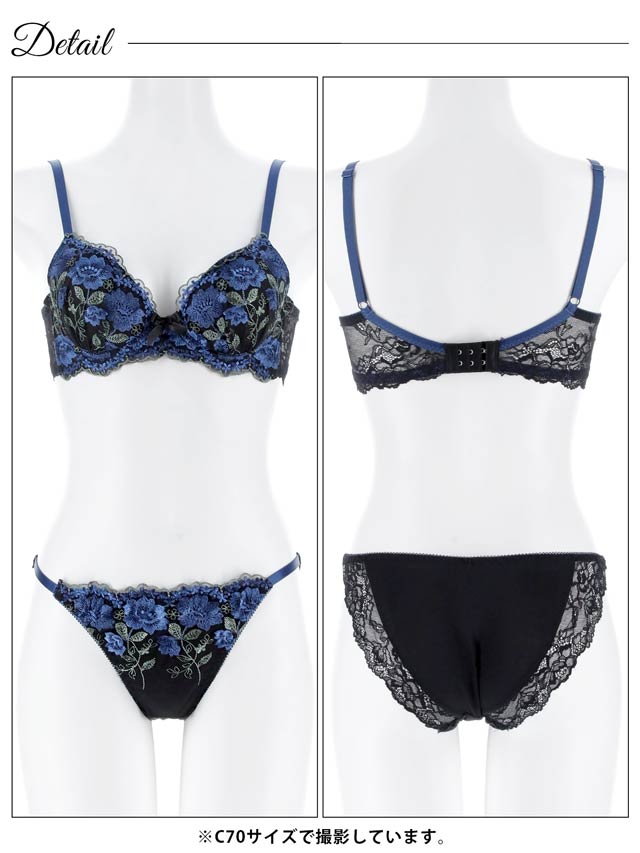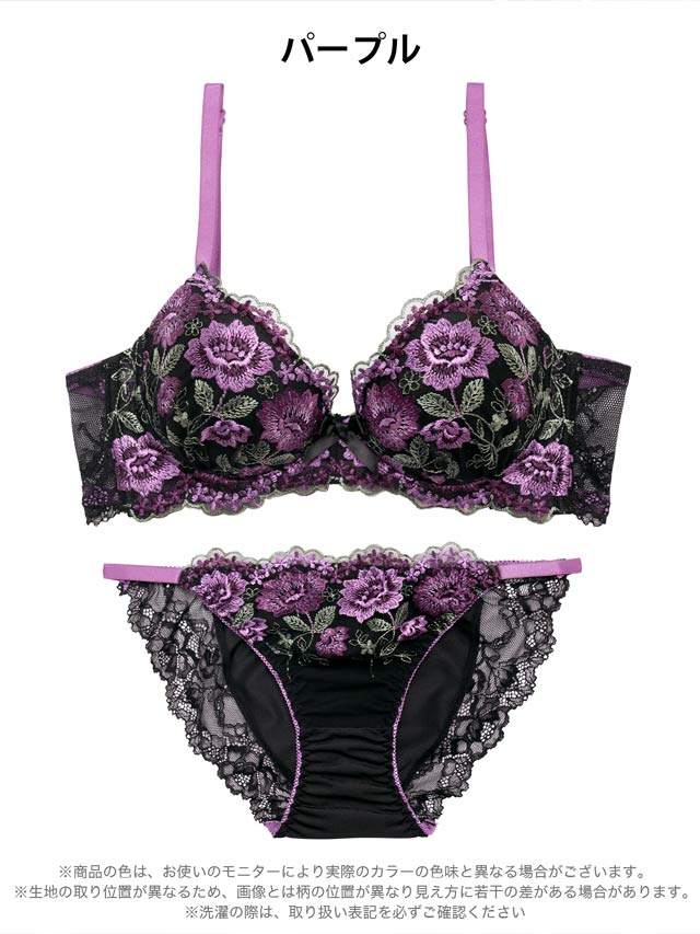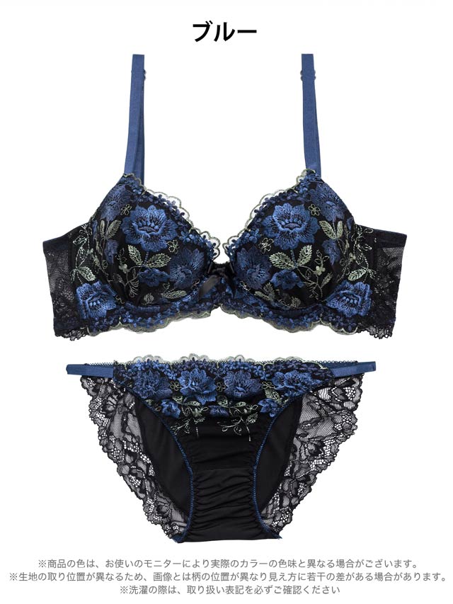 4/17新作!ダークフラワーブルーム育乳脇高ブラジャー&フルバックショーツ[激売れ]