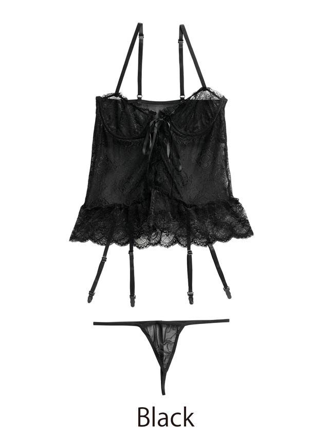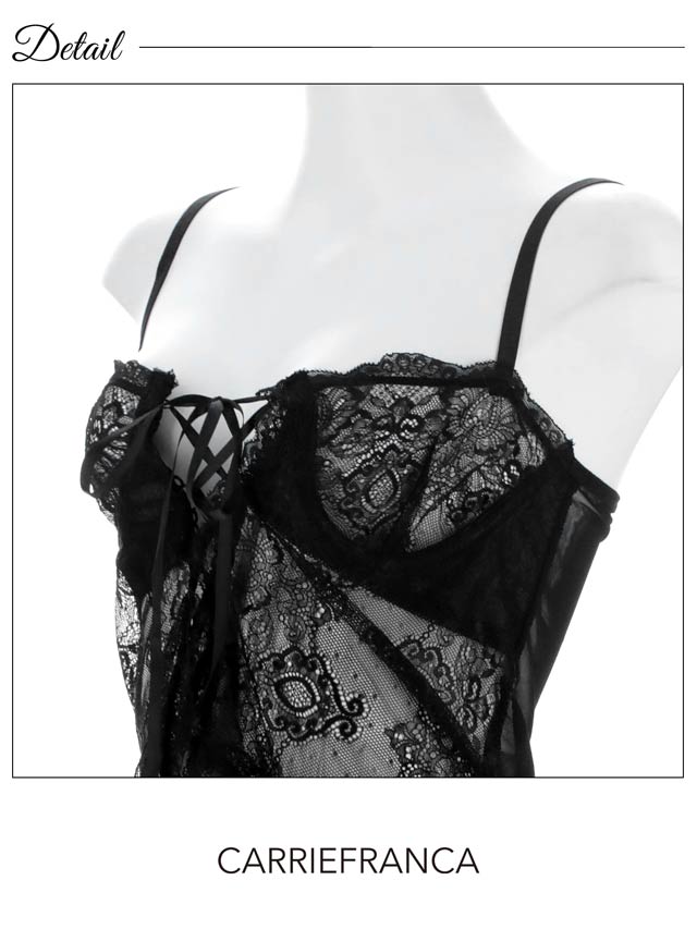 4/20新作![CARRIEFRANCA]ダークシアーレースアップベビードール