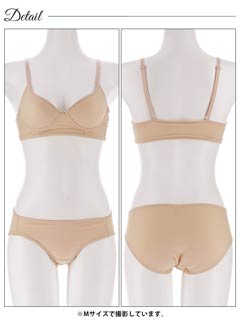 ヌーディーレース育乳脇高ブラジャー&サイド紐バック透けフルバックショーツ