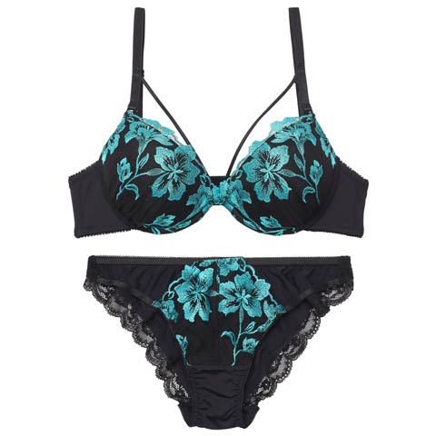 11/15再販!ダスティジュエルフラワー育乳脇高ブラジャー&サイド紐バック透けフルバックショーツ[激売れ]