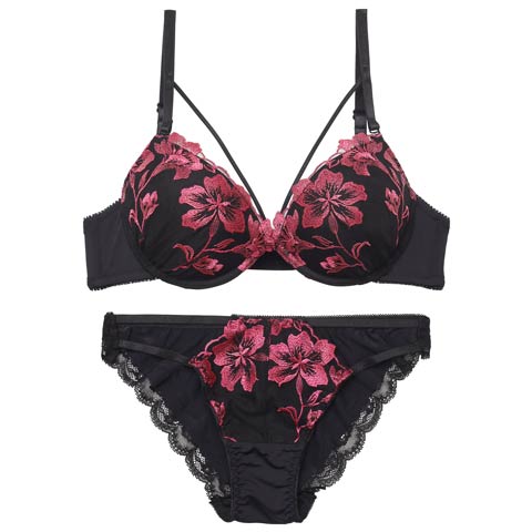 12/9再販!ロマンティックベルローズ育乳脇高ブラジャー&バック透けフルバックショーツ[激売れ]