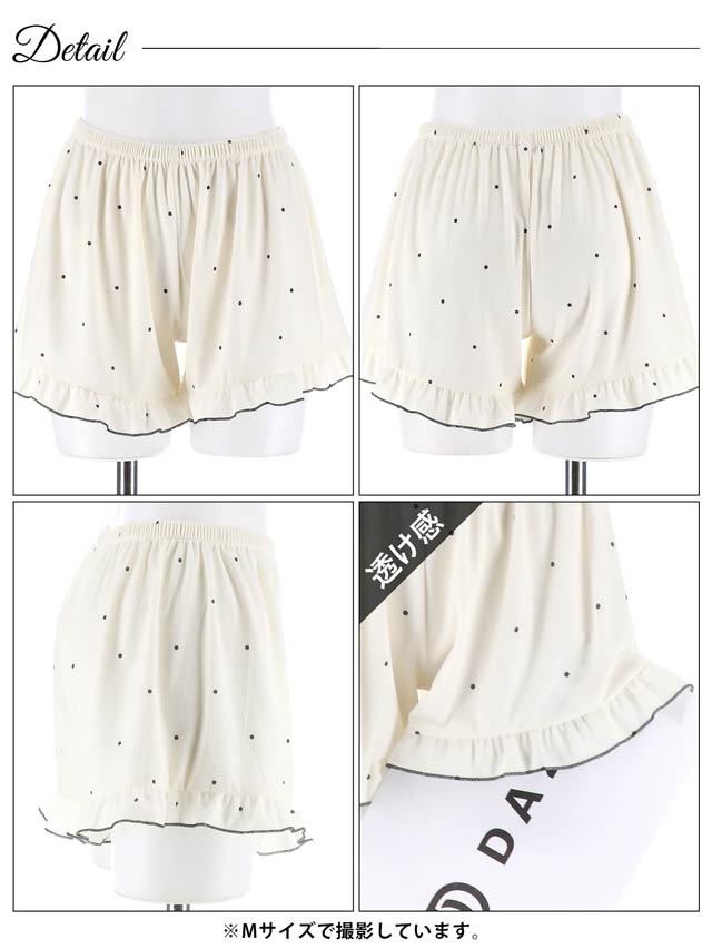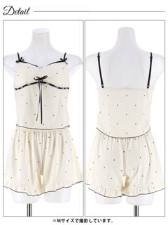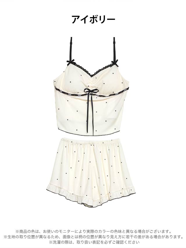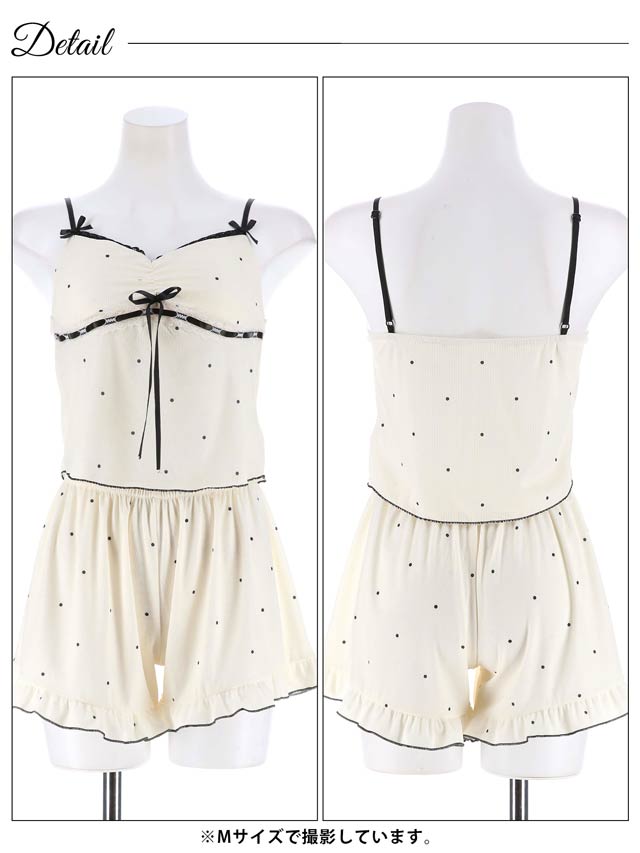 シンプルドットリボンレースベビードール&タップパンツ