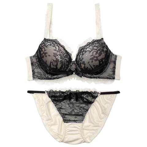 オールレースカットストリング育乳脇高ブラジャー&バック透けフルバックショーツ