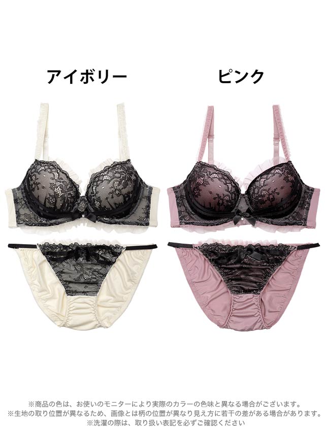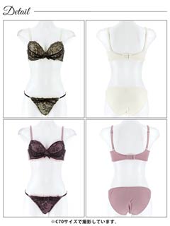 フロレゾンローズレース育乳脇高ブラジャー&サイド紐バック透けフルバックショーツ