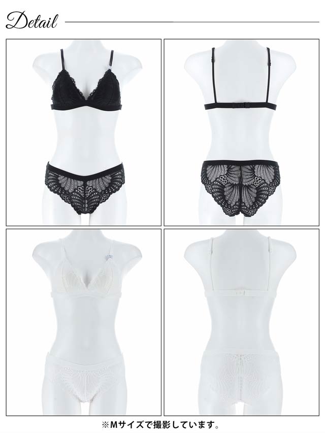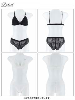 オールレースカットストリング育乳脇高ブラジャー&バック透けフルバックショーツ