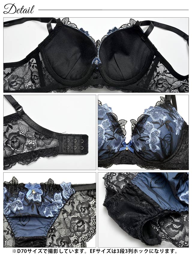 4/25再販!【EFサイズ】ダスティブルームエンブロイダリー育乳脇高ブラジャー&バック透けフルバックショーツ[大人気][L]