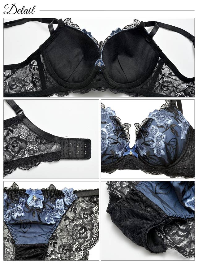 4/25再販!ダスティブルームエンブロイダリー育乳脇高ブラジャー&バック透けフルバックショーツ[激売れ]