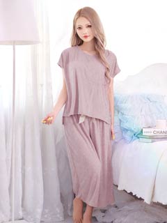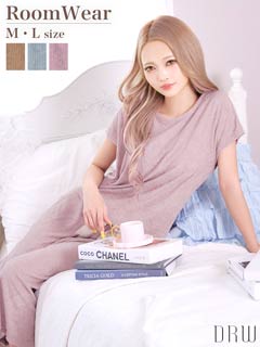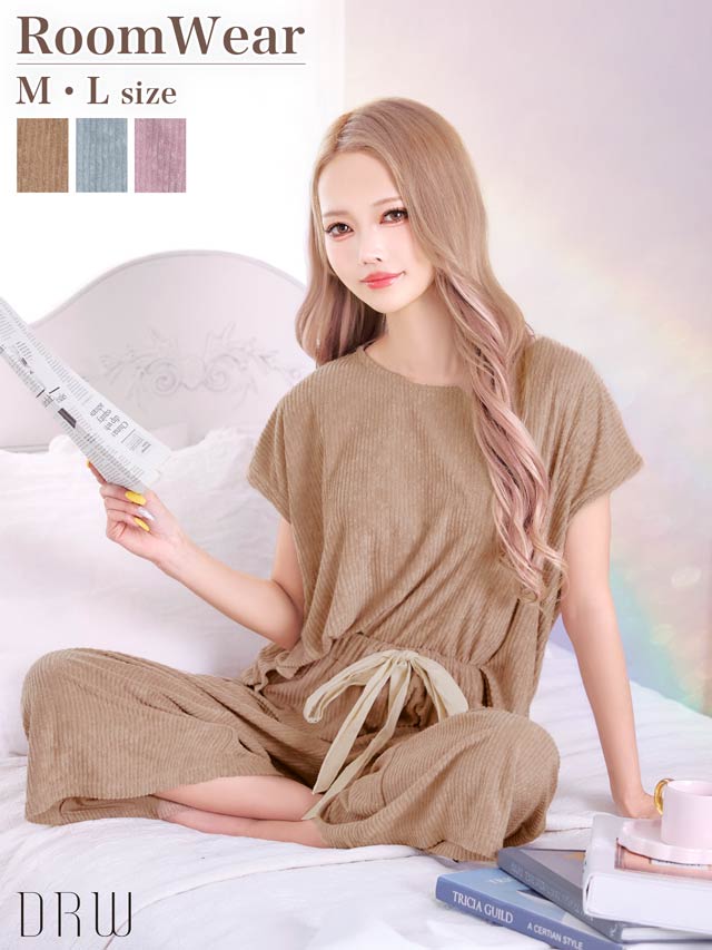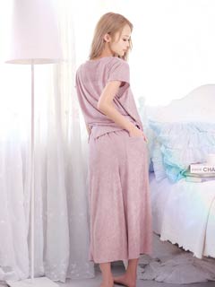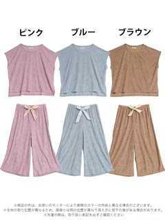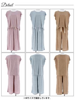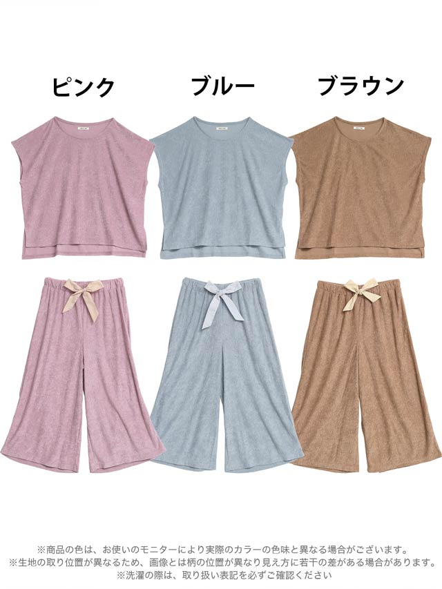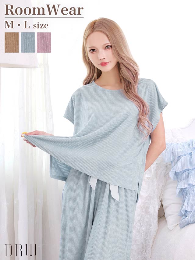 リブジャガードパイル半袖トップス&ロングパンツルームウェア