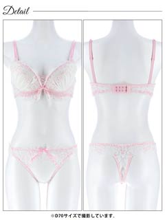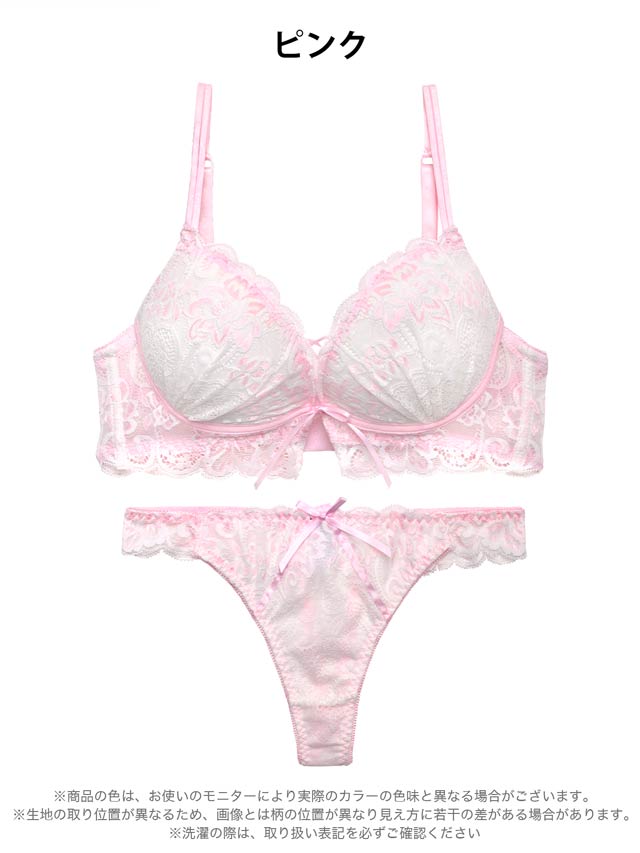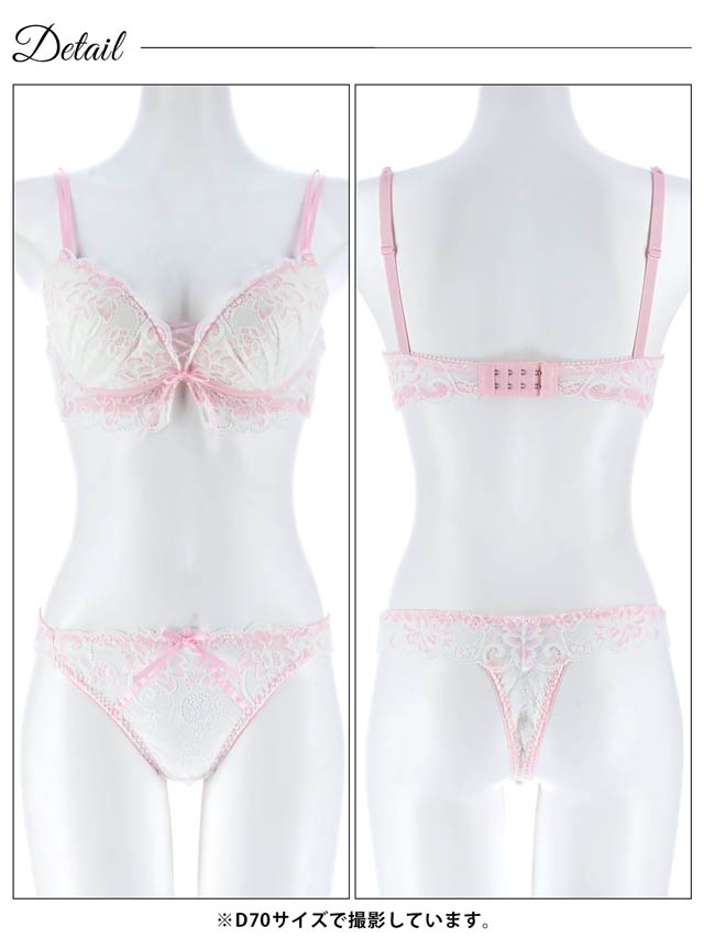 4/29新作!【かとゆり着用】パステルフラワーレースアップブラジャー&バック透けTバックショーツ[激売れ]