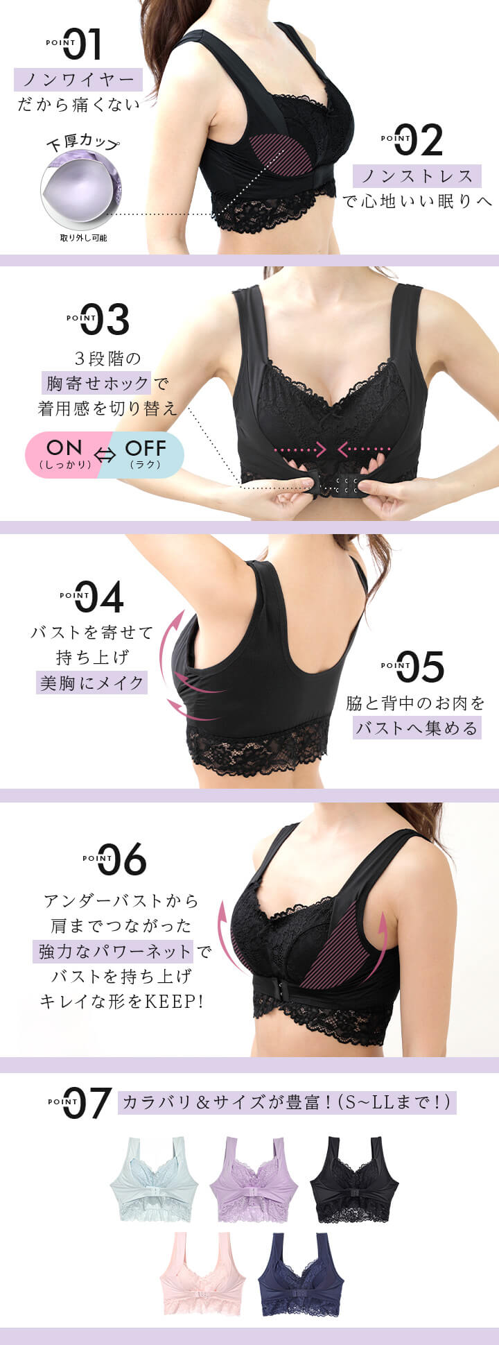 4/3再販!【ノンワイヤー】フロントホック付きドリーミーナイトブラ単品