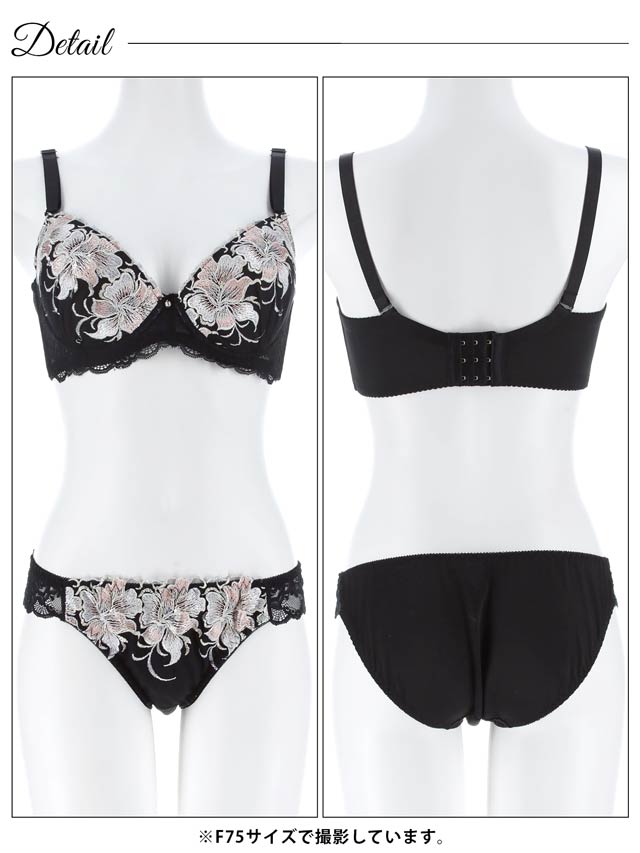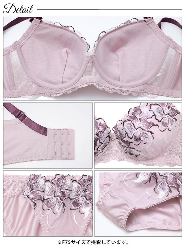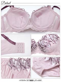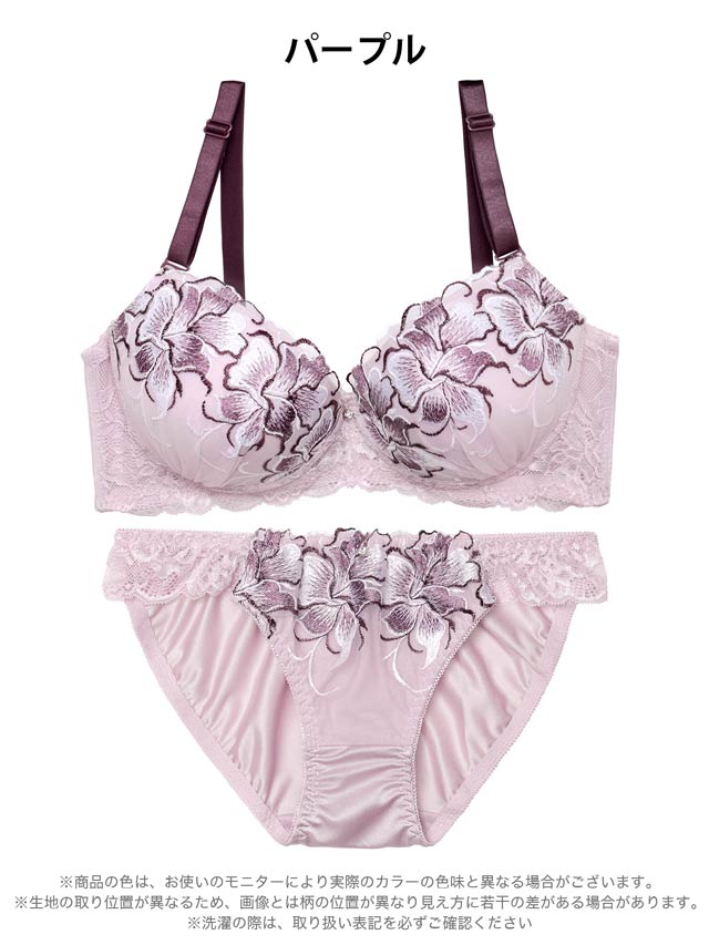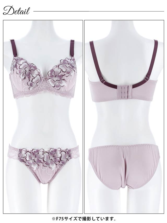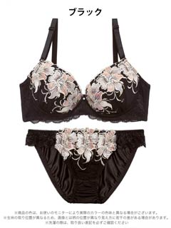 グロッシィフラワーエンブロイダリー育乳脇高ブラジャー&フルバックショーツ