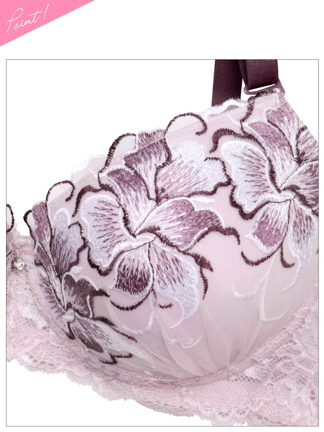 グロッシィフラワーエンブロイダリー育乳脇高ブラジャー&Tバックショーツ