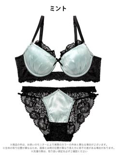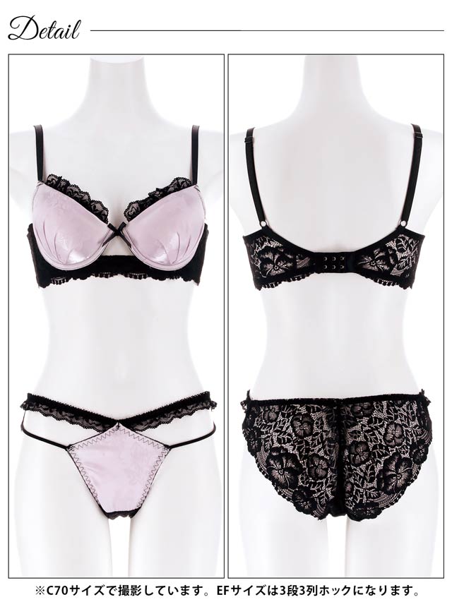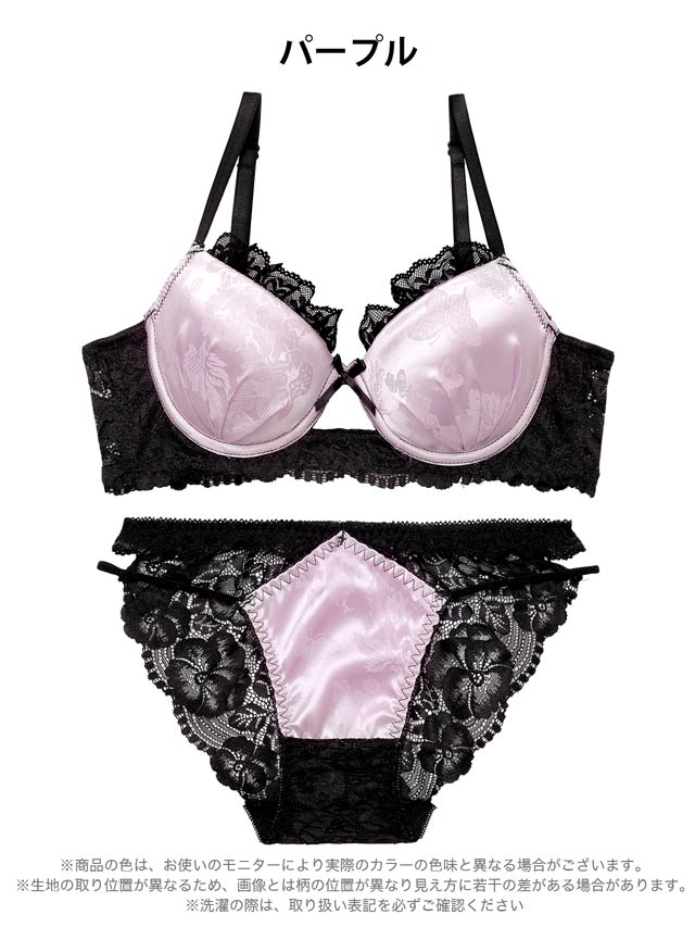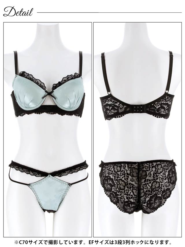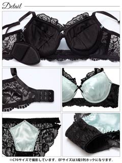 4/3新作!【EFサイズ】グロッシーサテンレース育乳脇高ブラジャー&バック透けフルバックショーツ[大人気]