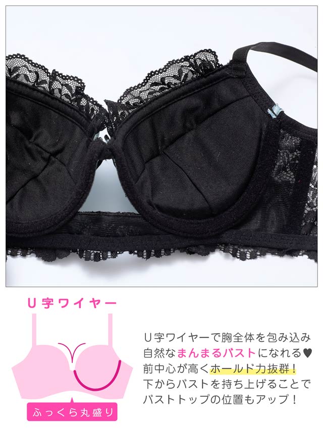 オールレースカットストリング育乳脇高ブラジャー&バック透けフルバックショーツ