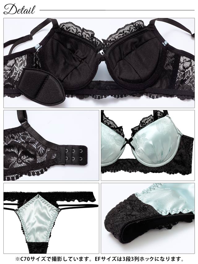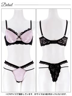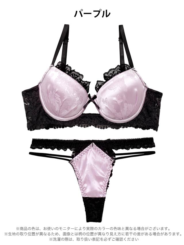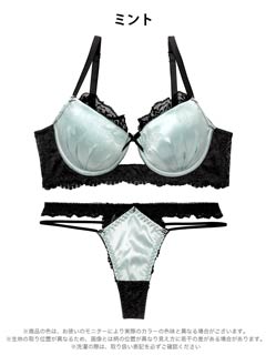 4/3新作!【EFサイズ】グロッシーサテンレース育乳脇高ブラジャー&バック透けTバックショーツ[大人気]