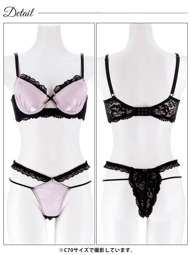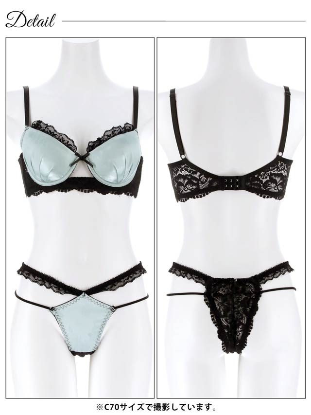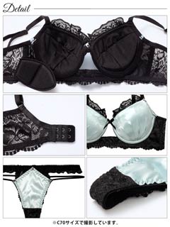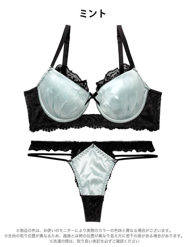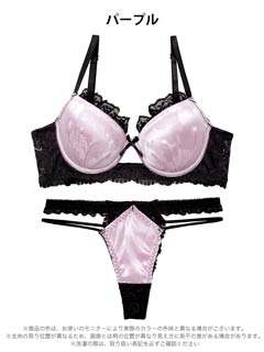 4/3新作!グロッシーサテンレース育乳脇高ブラジャー&バック透けTバックショーツ[激売れ]