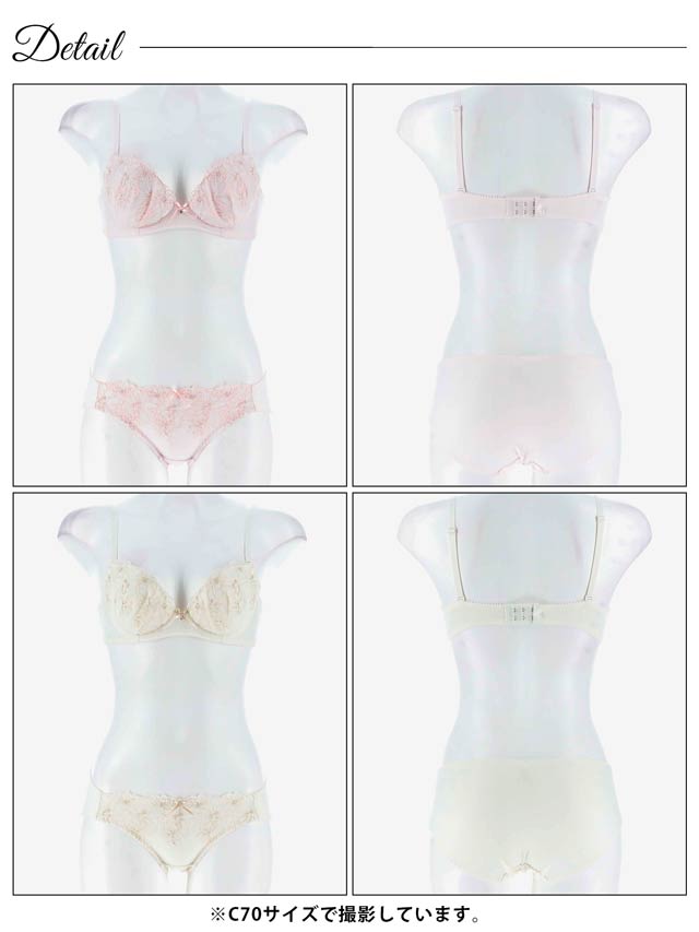 フロレゾンローズレース育乳脇高ブラジャー&サイド紐バック透けフルバックショーツ