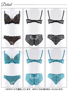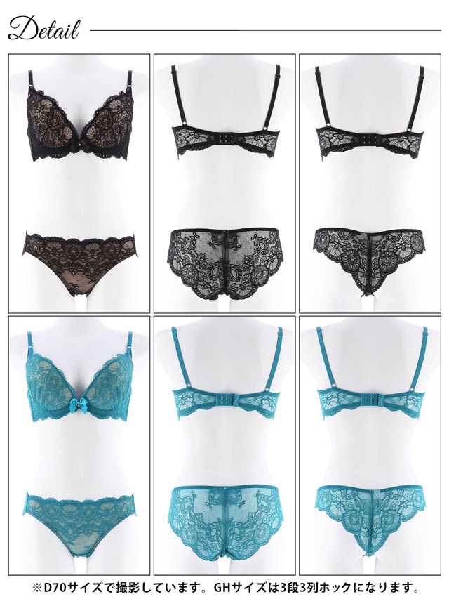 オールレースカットストリング育乳脇高ブラジャー&バック透けフルバックショーツ