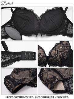 3/5再販!【三上悠亜着用】【3点セット】ローズブロッサムレース育乳脇高ブラジャー&バック透けフルバック&Tバックショーツ[大人気]
