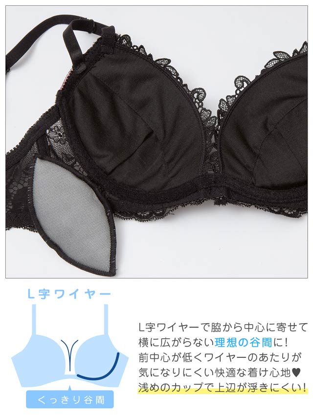 3/4カップ(モールドカップ)/ワイヤー:有(L字)/ホック:バック2段3列