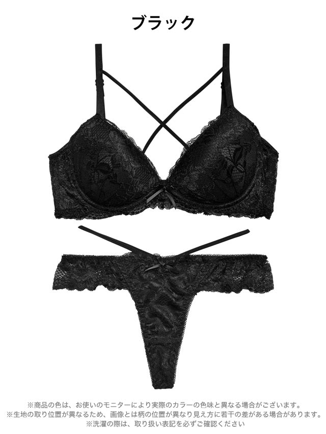 グロスフラワーストリングサイドレースブラジャー&フルバックショーツ[プチプラ]