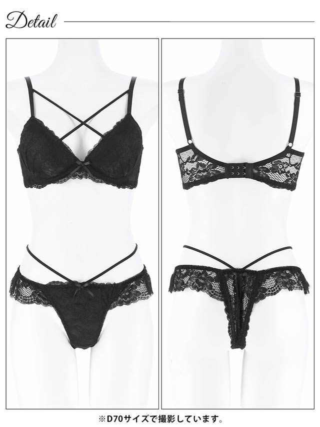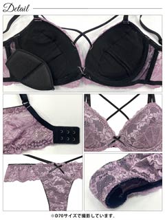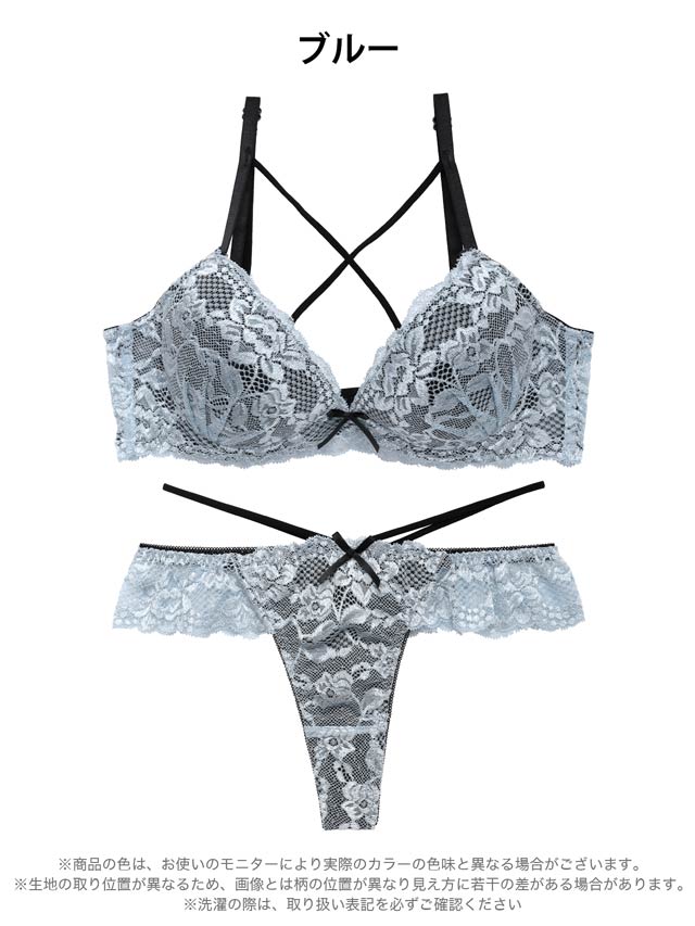 オールレースカットストリング育乳脇高ブラジャー&バック透けフルバックショーツ