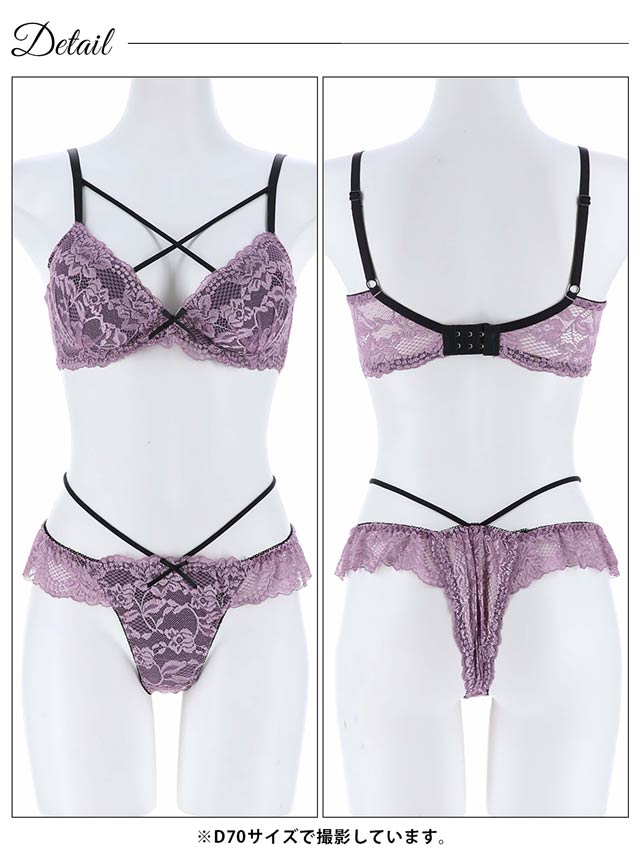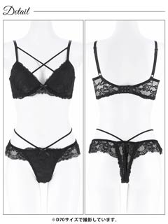 グロスフラワーストリングサイドレースブラジャー&Tバックショーツ[激売れ]