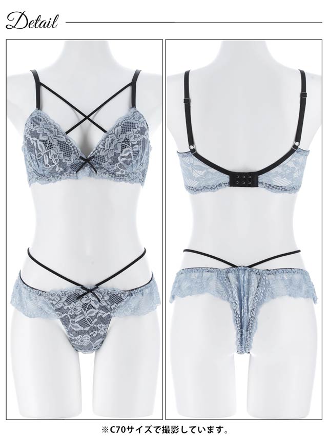 オールレースカットストリング育乳脇高ブラジャー&バック透けフルバックショーツ