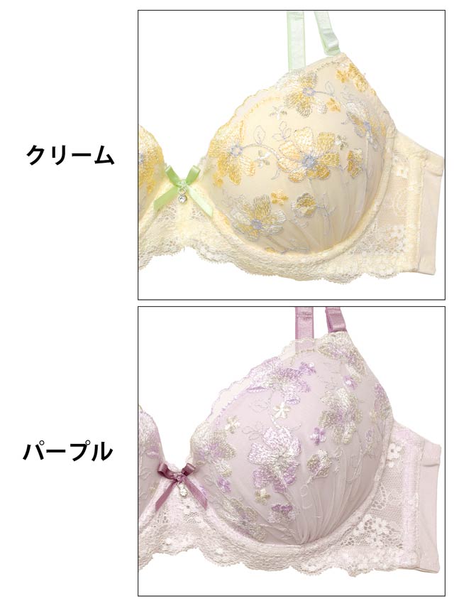 フロレゾンローズレース育乳脇高ブラジャー&サイド紐バック透けフルバックショーツ