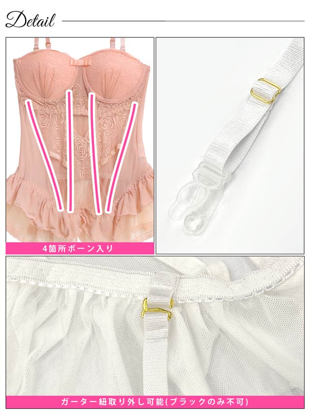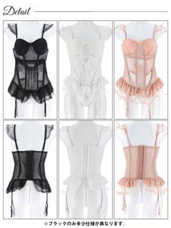 フロレゾンローズレース育乳脇高ブラジャー&サイド紐バック透けフルバックショーツ