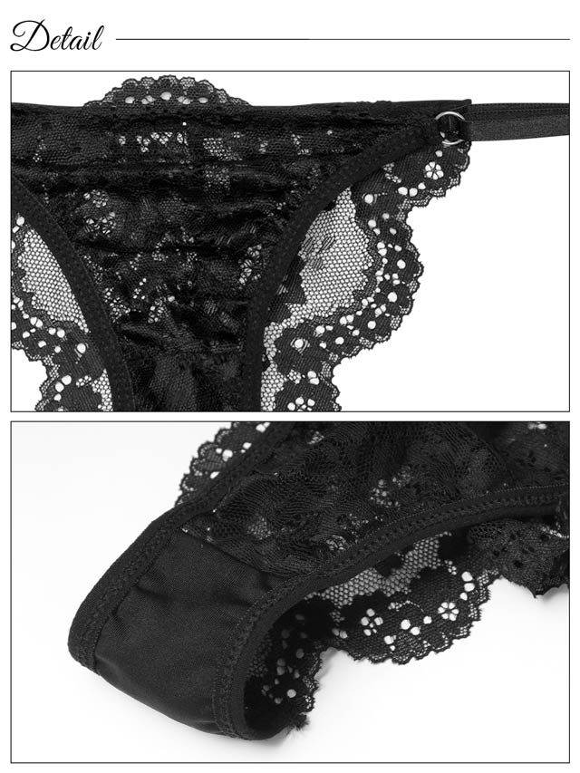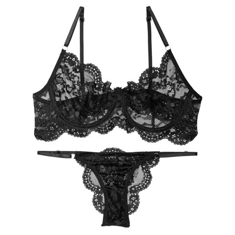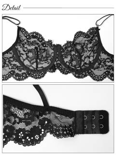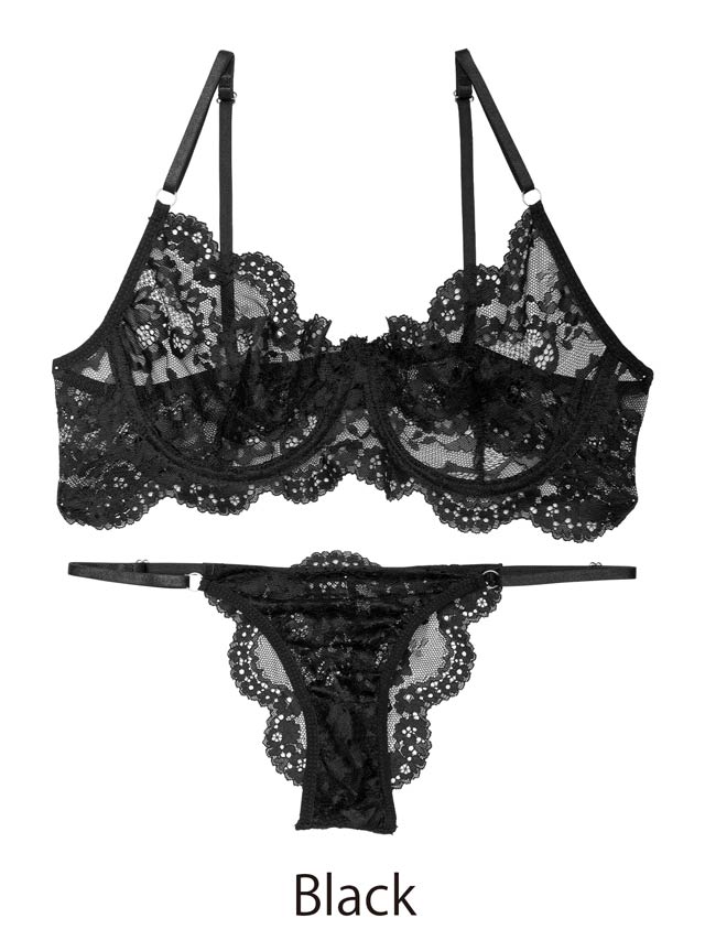 オールレースカットストリング育乳脇高ブラジャー&バック透けフルバックショーツ
