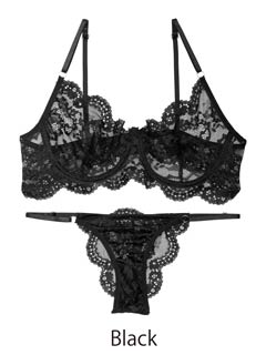 11/15再販!オールレースカットストリング育乳脇高ブラジャー&バック透けフルバックショーツ[激売れ]