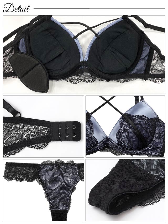 オールレースカットストリング育乳脇高ブラジャー&バック透けフルバックショーツ