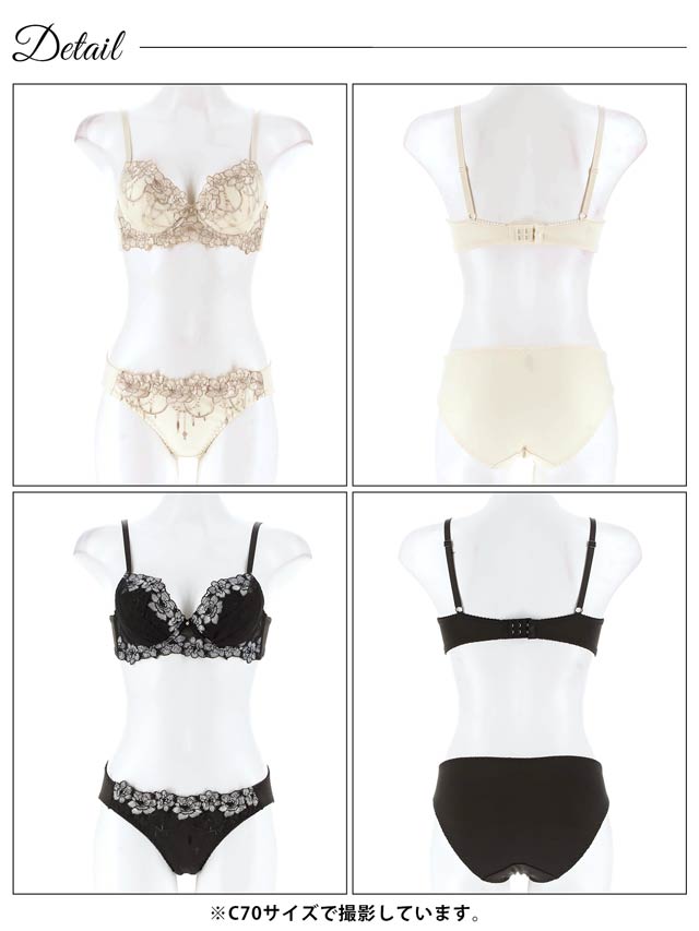 フロレゾンローズレース育乳脇高ブラジャー&サイド紐バック透けフルバックショーツ