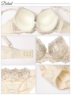 10/16再販!チュールフラワーチャーム育乳脇高ブラジャー&フルバックショーツ[激売れ]