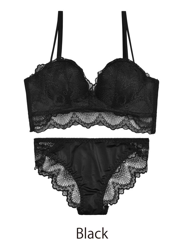 オールレースカットストリング育乳脇高ブラジャー&バック透けフルバックショーツ