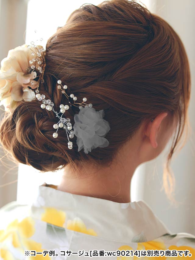 [4点SET]フラワー&パールビーズ髪飾り【2025年新作/YUKATA by dazzy】