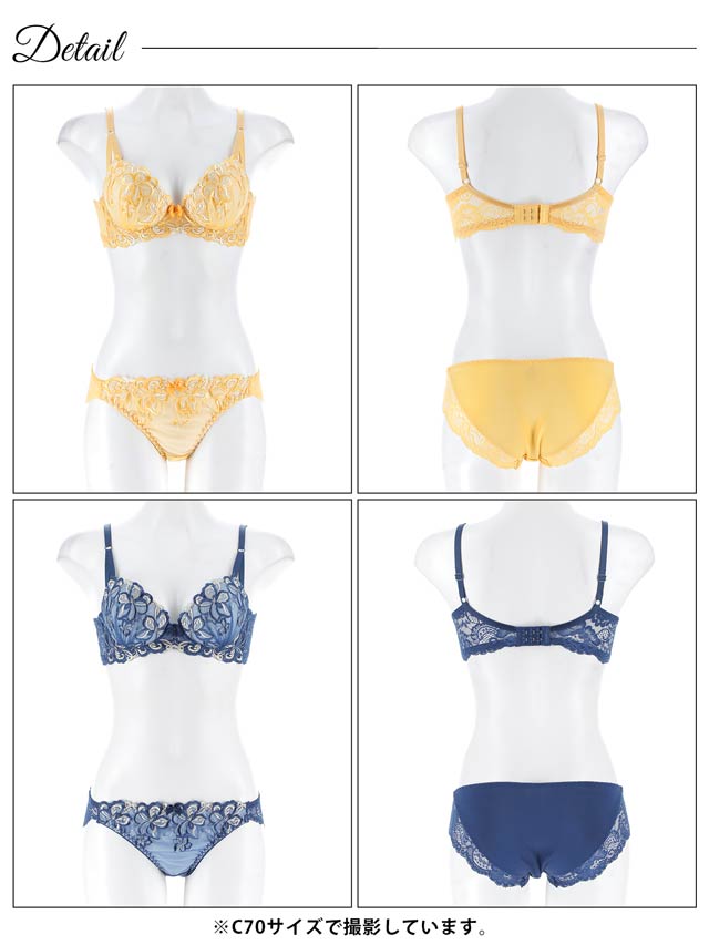 【COCO Linge】ガーリーフラワー刺繍ブラジャー&フルバックショーツ