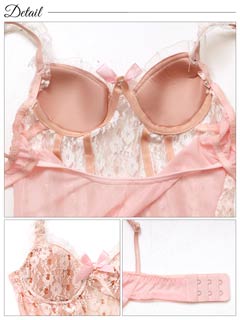フロレゾンローズレース育乳脇高ブラジャー&サイド紐バック透けフルバックショーツ