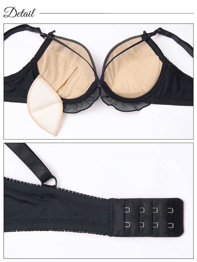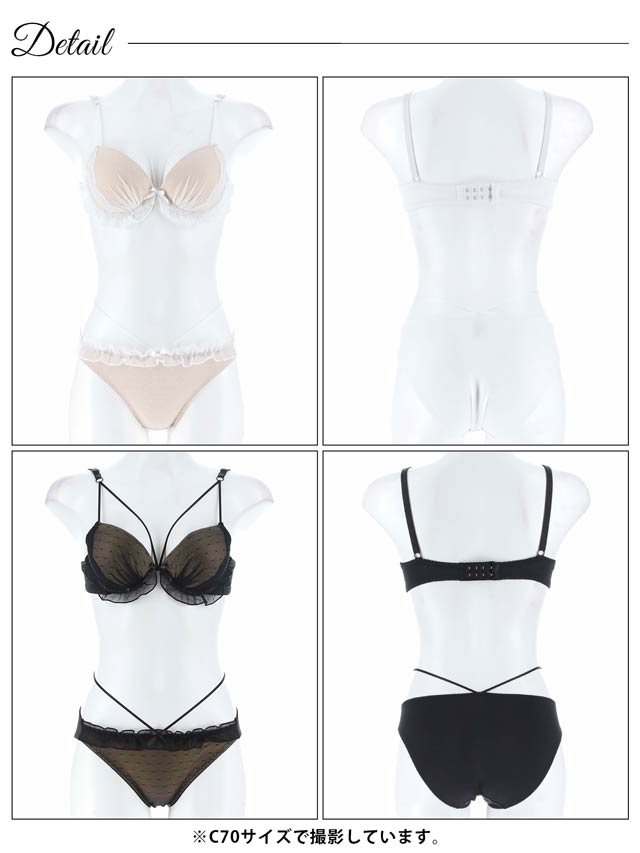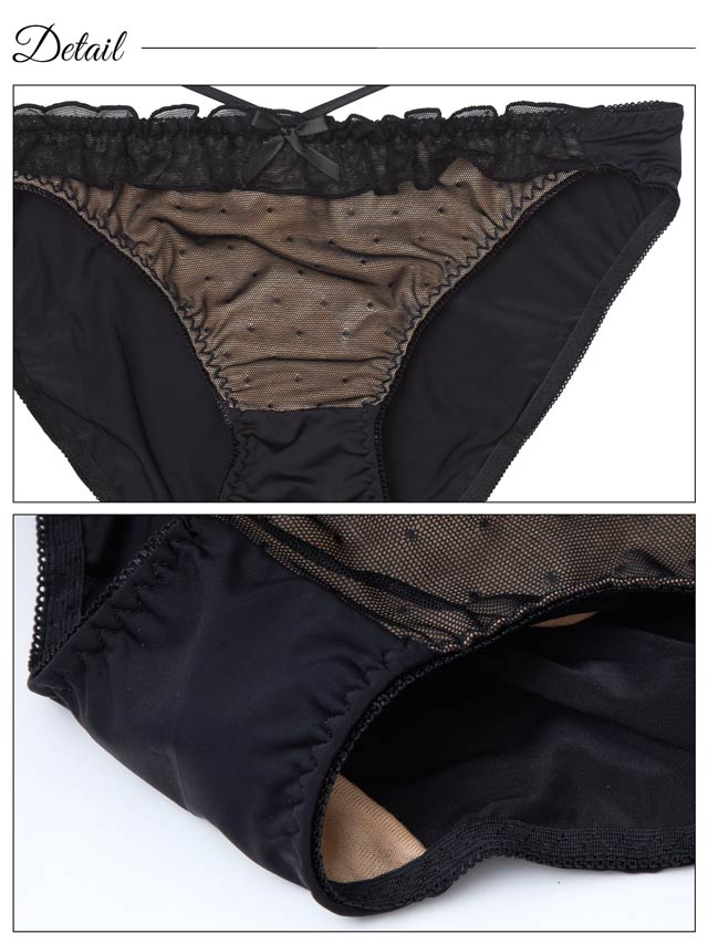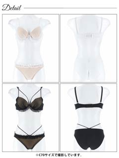 オールレースカットストリング育乳脇高ブラジャー&バック透けフルバックショーツ