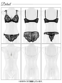 フロレゾンローズレース育乳脇高ブラジャー&サイド紐バック透けフルバックショーツ