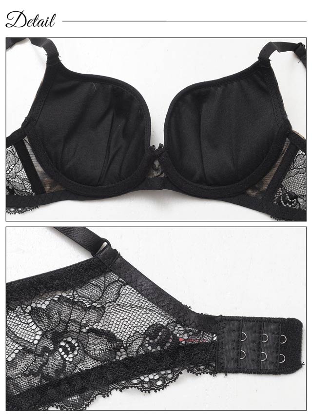 オールレースカットストリング育乳脇高ブラジャー&バック透けフルバックショーツ