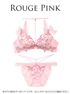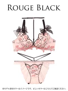 フロレゾンローズレース育乳脇高ブラジャー&サイド紐バック透けフルバックショーツ
