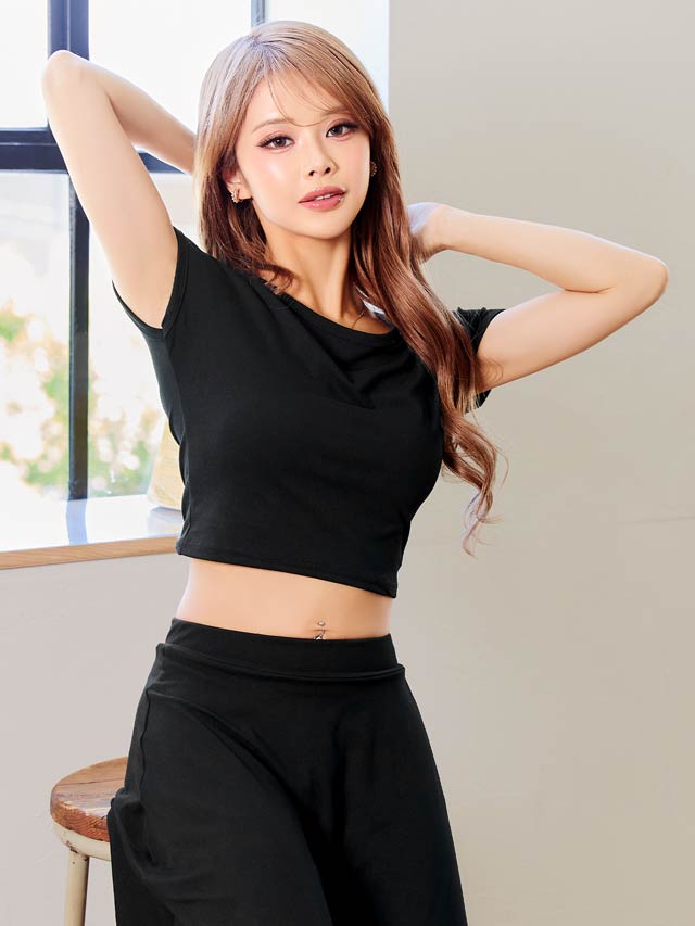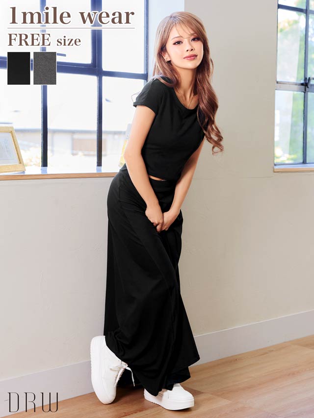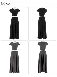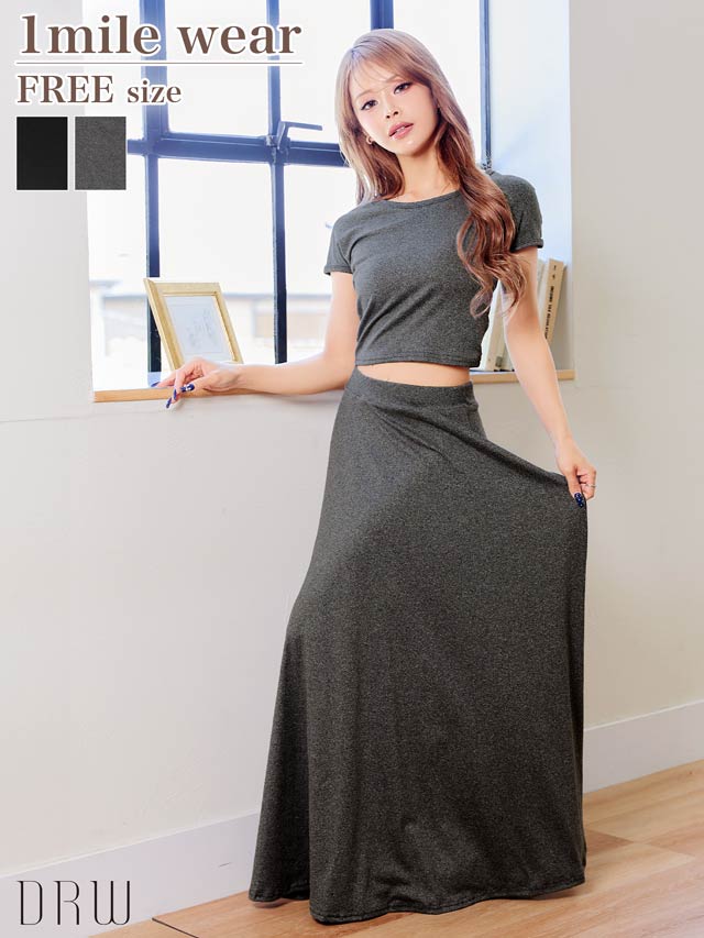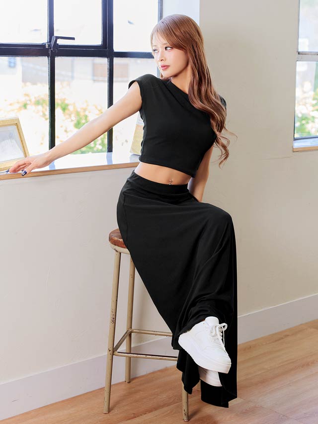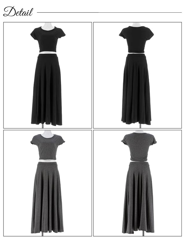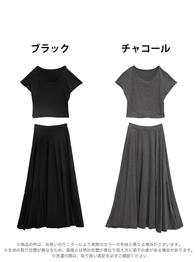 クロップド半袖トップス&フレアロングスカートセットアップ